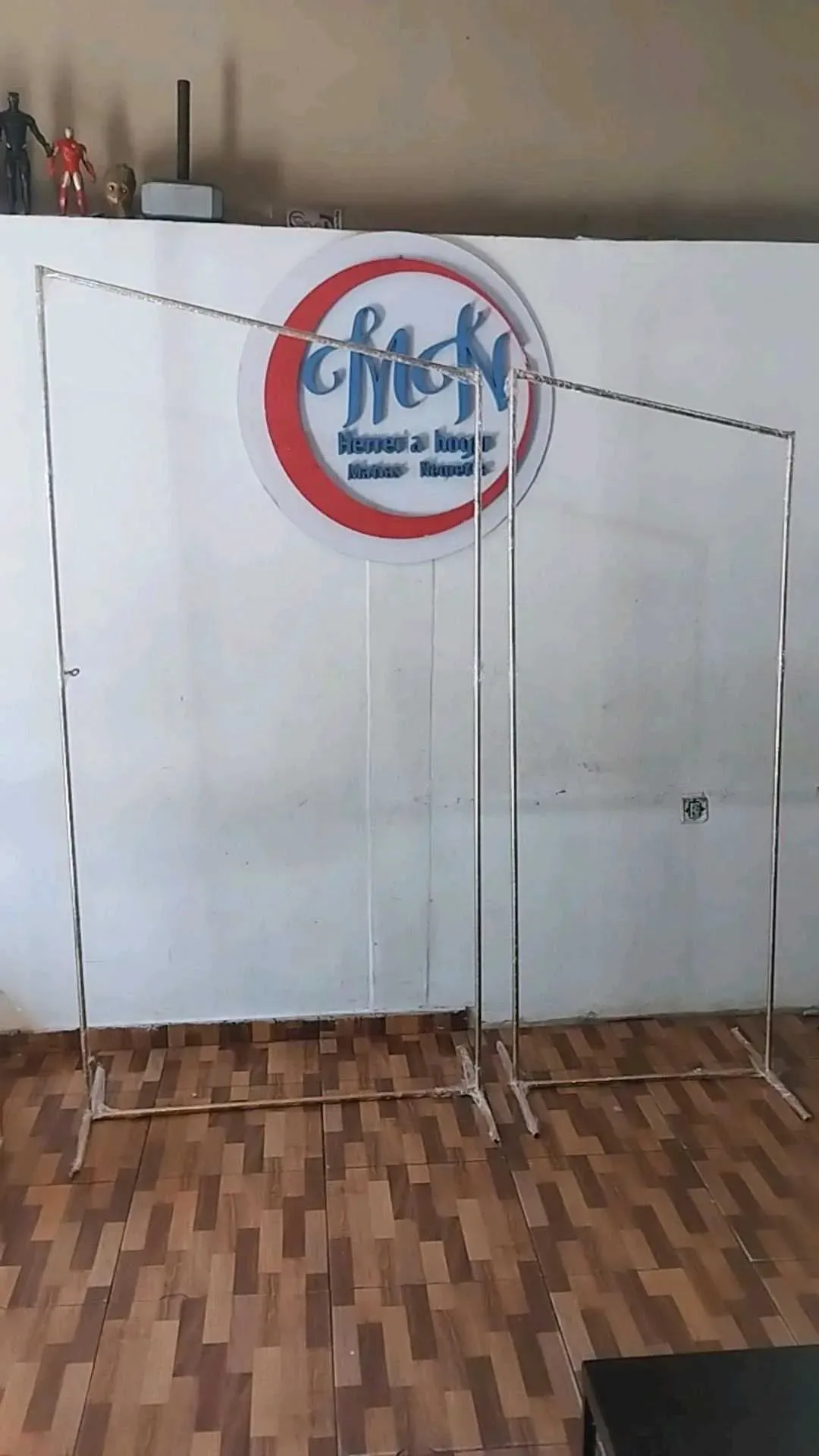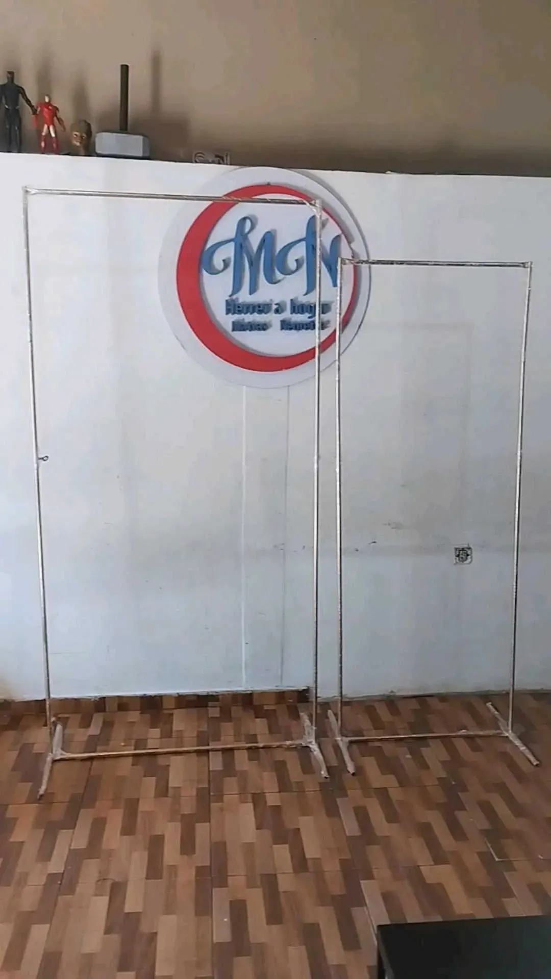 El fondo emprendedor consta de 2 paneles (70x1,80 y 1mx2m) que los podes utilizar unido o por separado porq incluye 4 bases y accesorios. Además tenés 6 partes superiores para que puedas cambiar el diseño de tus paneles (ovalado, inclinado, recto).